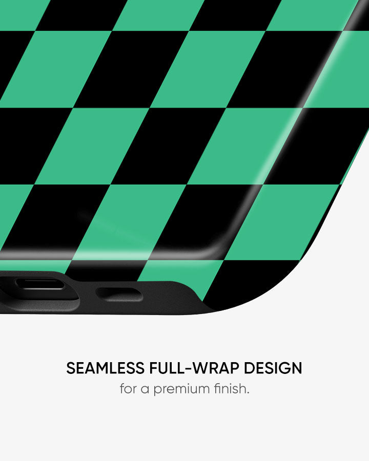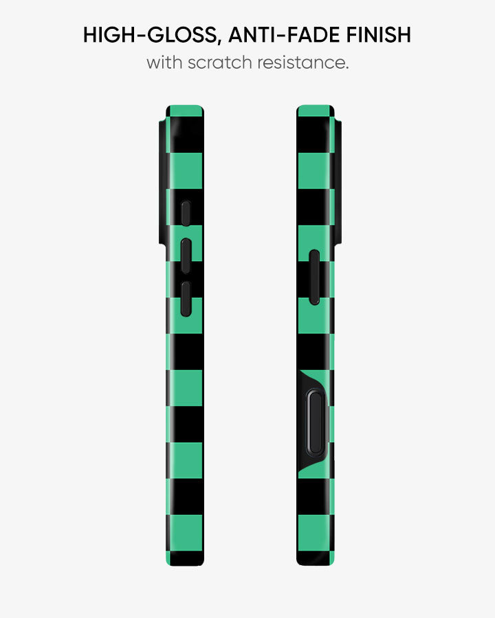 Inspired by iconic demon-slayer uniform aesthetics, this bold green-and-black checkered design represents courage, loyalty, and unwavering determination. Minimal yet powerful, it’s a symbol every true anime fan instantly recognizes.