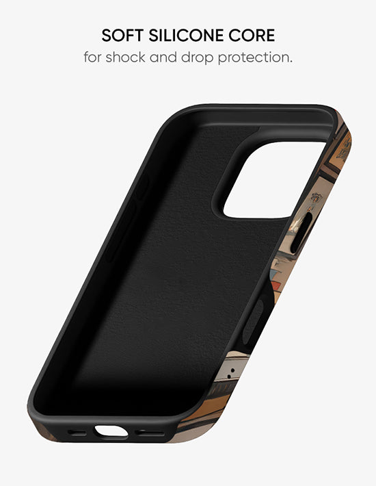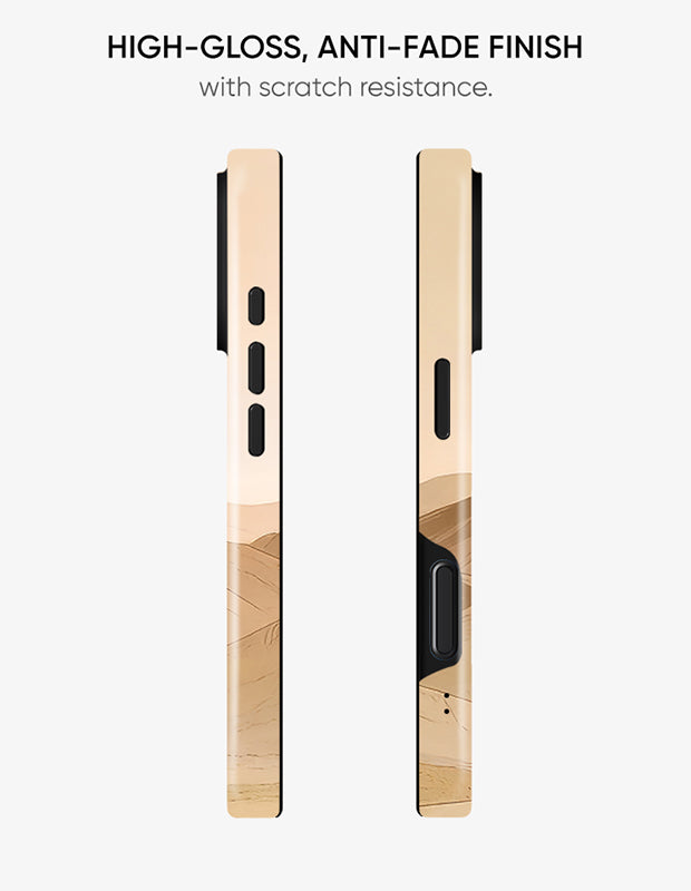 Built with dual-layer protection — soft shock-absorbing silicone inside and a tough outer shell outside — it handles drops like a hero handles villains. The high-gloss full-wrap finish keeps the desert tones bold, sharp, and fade-resistant.